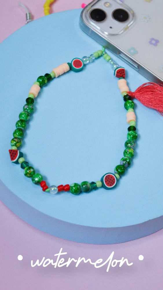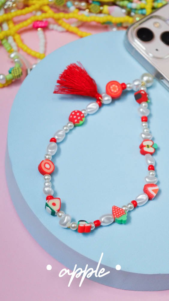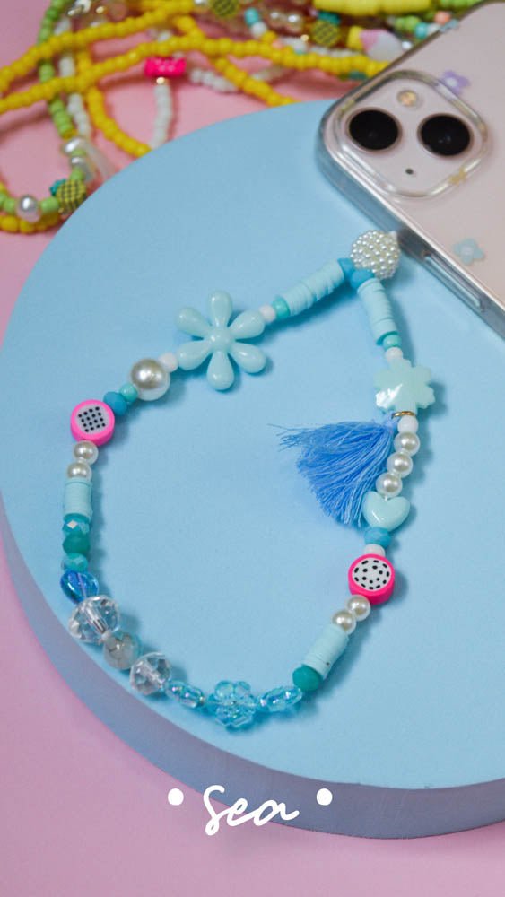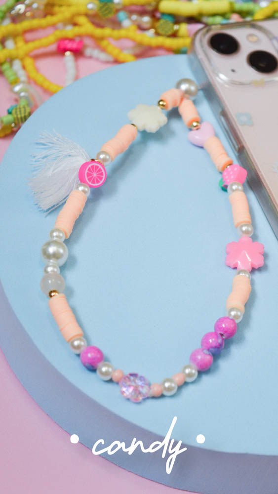 Privezak za telefon koji se kači na masku i zgodan je za nošenje oko ruke. U našoj ponudi možete naći priveske od različitih elemenata i materijala - češki kristali, kašaste perle, biseri, polimerna glina, plastične kuglice, školjke, kićanke itd.